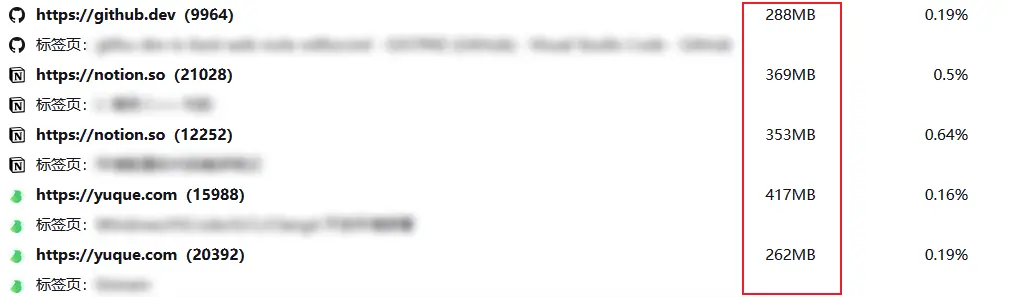 上图是火狐任务管理器中的内存使用情况,虽然从内存使用上来看好像和其他笔记软件差不多,但图中的情景是每个软件打开两个文档的结果。因为 github.dev 可以在内部打开多个标签页,甚至左右上下随便分屏,在打开多个笔记的情况下内存不会像其他软件一样成倍增加,这对于常开着占用大内存 IDE 的情况下查看编辑笔记有很大的优势。